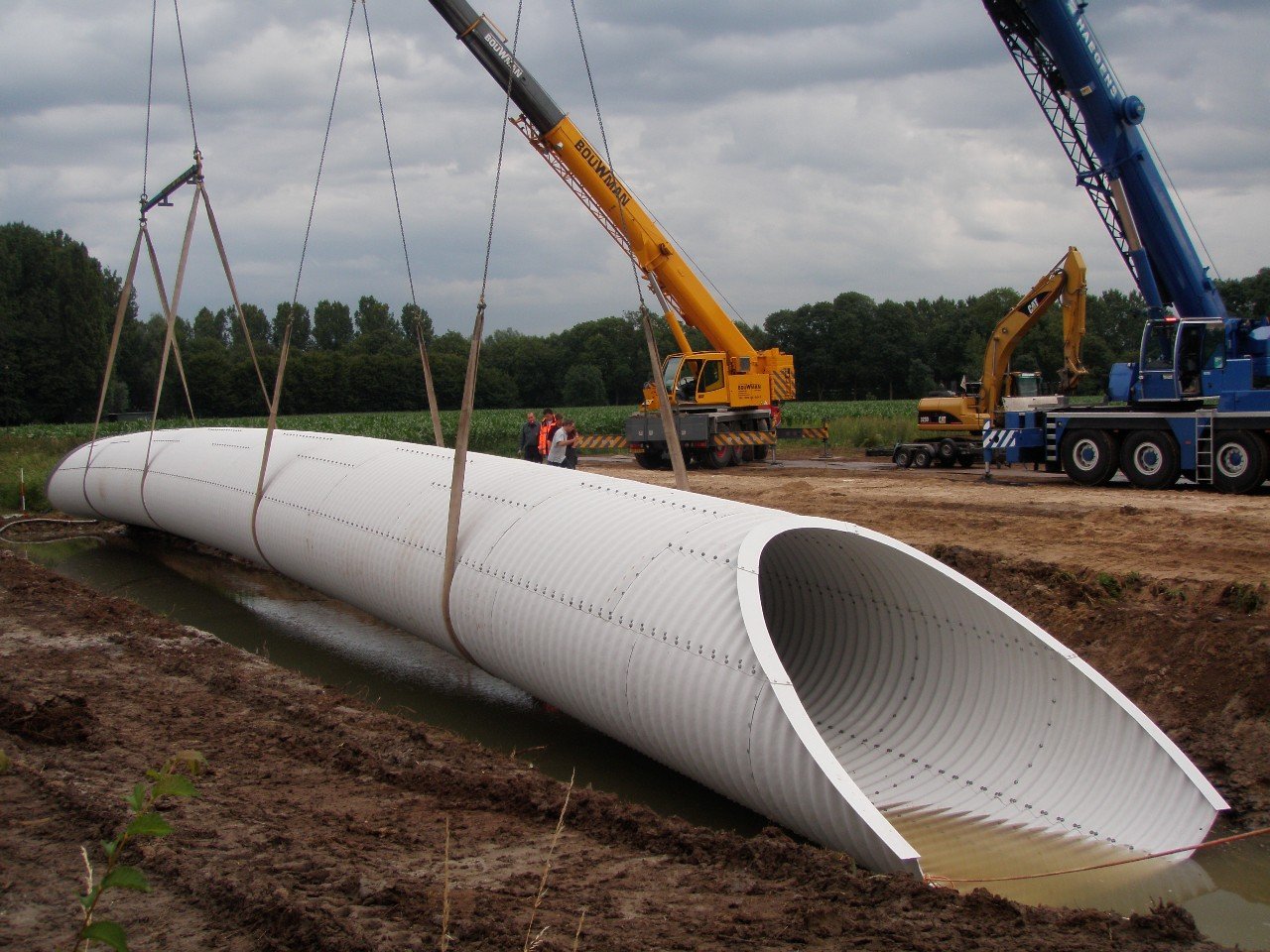 plaatsen van, eigen ontwikkelde, prefab stuwen
